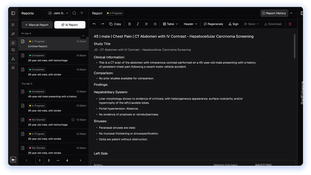 Through its CareTeam Connect module, RadioView.AI™ enables secure, role-based, multi-user access for team members across multiple sites. Teams can co-edit and review reports collaboratively, streamlining communication and decision-making.
