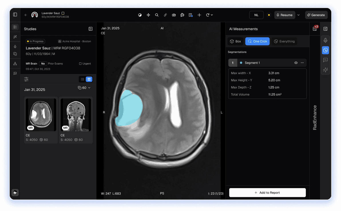 View, analyze, and generate AI-powered multimodality reports in a unified viewer within each study